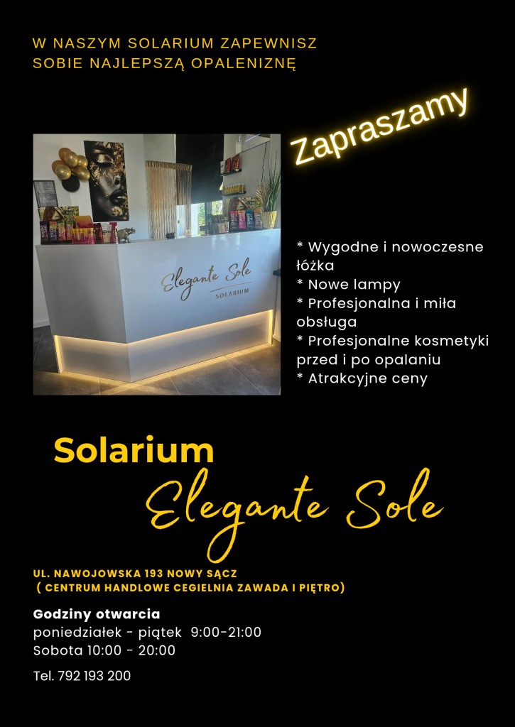 Solarium Elegante Sole to miejsce gdzie piękna opalenizna spotyka nowoczesną technologie i komfort na najwyższym poziomie. Oferujemy miłą i profesjonalną obsługę, bezpieczne nowe lampy, profesjonalne kosmetyki do opalania. Posiadamy łóżka leżące Ergoline oraz tubę Opal fitness SUNBEDS.
